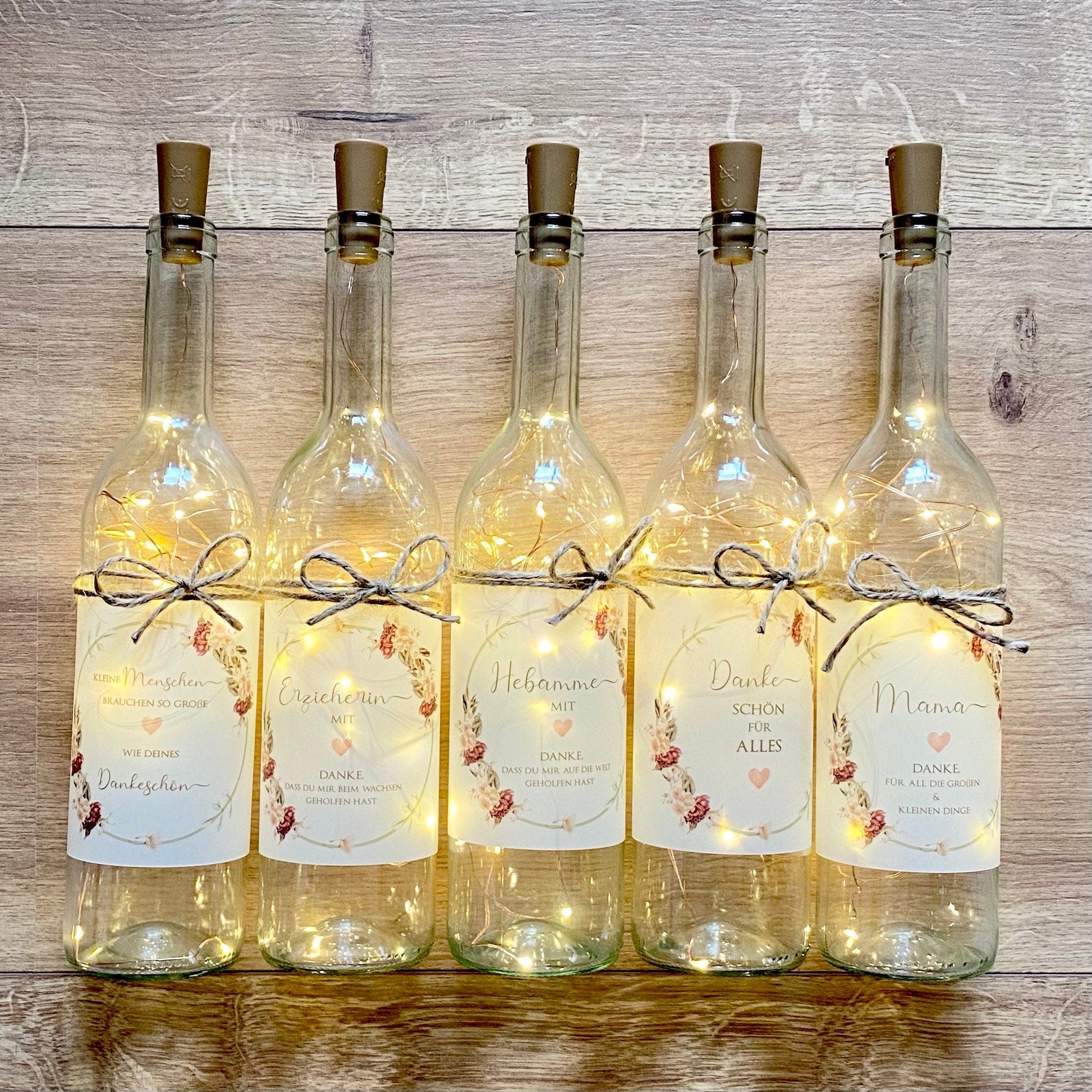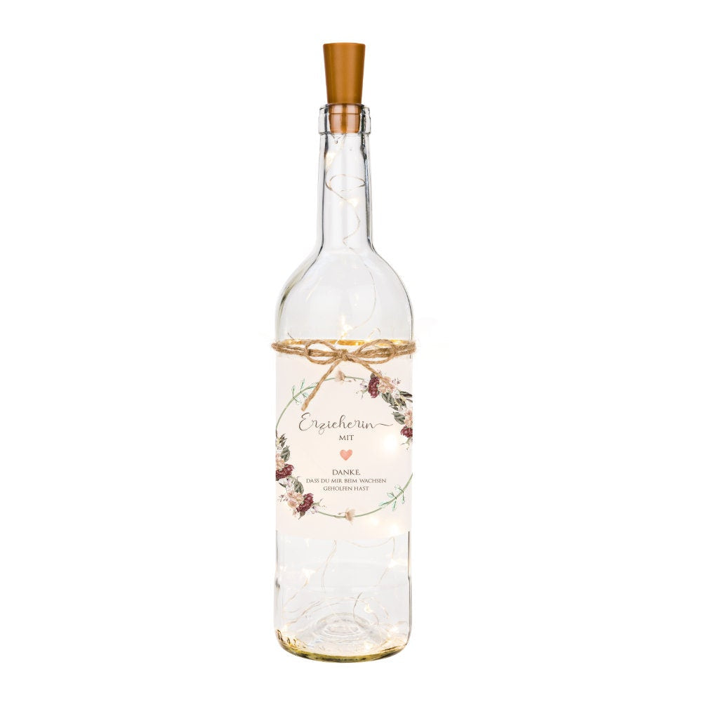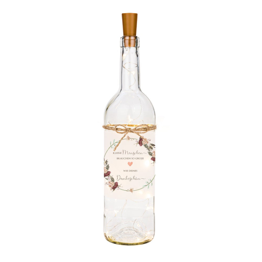 Flaschenlicht mit Spruch "Kleine Menschen" | Glasflasche mit originellen Spruch für die Erzieherin und Hebamme | Schönes Geschenk um Danke zu sagen | 6 Motivvarianten zur Auswahl