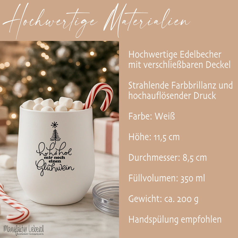 Mit 5 festlichen Motiven zur Auswahl ist der Edelstahlbecher nicht nur praktisch, sondern auch ein stimmungsvoller Begleiter in der Adventszeit. Perfekt als Weihnachtsgeschenk, Wichtelgeschenk oder kleine Aufmerksamkeit für Familie, Freunde oder Kollegen.