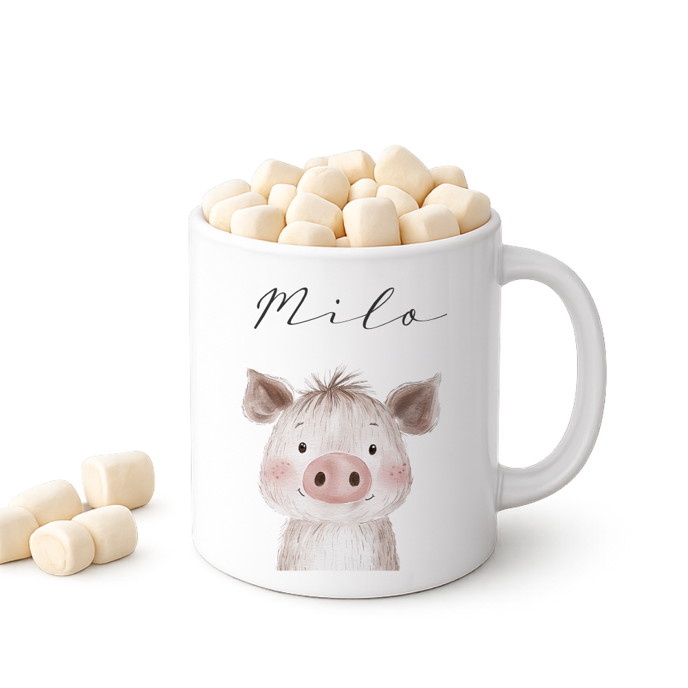 Diese liebevoll gestaltete Kindertasse mit Namen wird schnell zum neuen Lieblingsbecher kleiner Tierfreunde. Mit einem süßen Waldtiermotiv und deinem individuellen Wunschnamen entsteht ein ganz persönliches Geschenk, das Kinder jeden Tag begleitet.