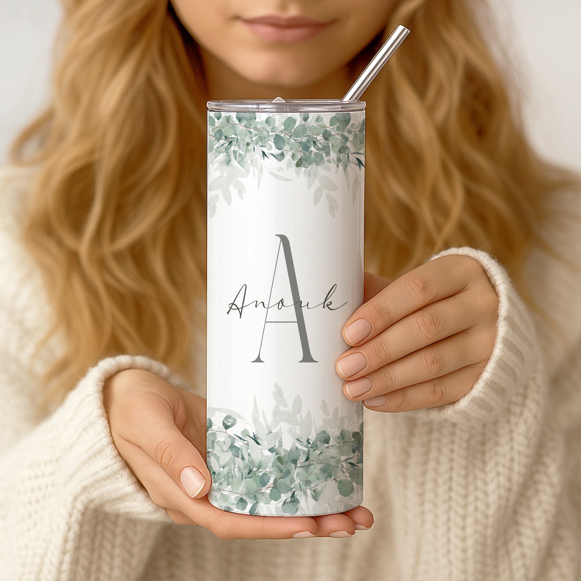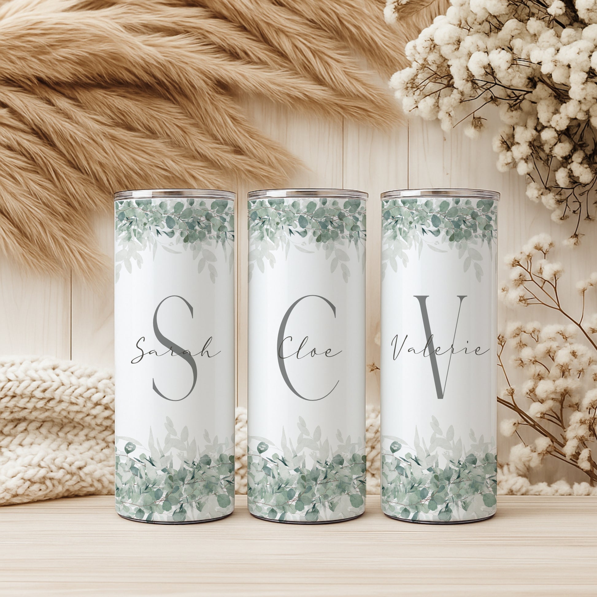 Erhältlich in weiß grün mit boho Eukalyptus, wird jeder Becher mit viel Liebe zum Detail gestaltet und individuell für dich gefertigt.