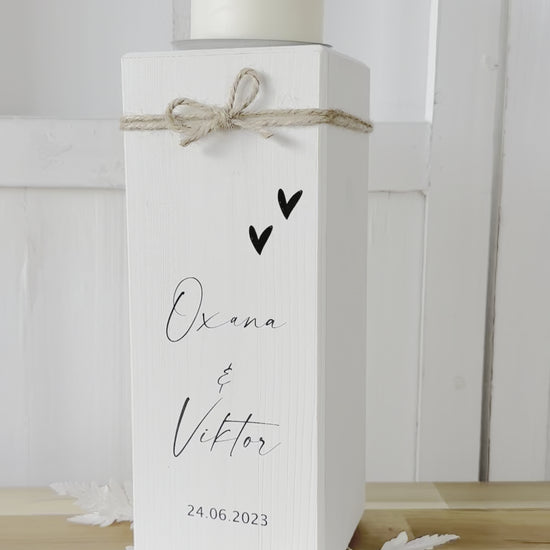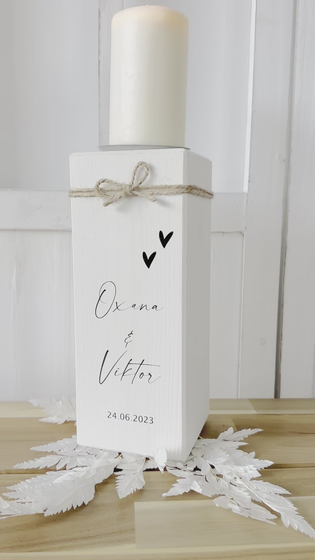 Der personalisierte Kerzenständer zur Vermählung ist eine berührende und sehr individuelle Geschenkidee und ein liebevolles persönliches Hochzeitsgeschenk an den Tag der Trauung. Halte diese Emotion und diesen so besonderen Tag in Form des Kerzenständer Geschenkes für immer fest. Er ist auch die ideale Dekoration am Tag der freien und standesamtlichen Eheschließung selbst.