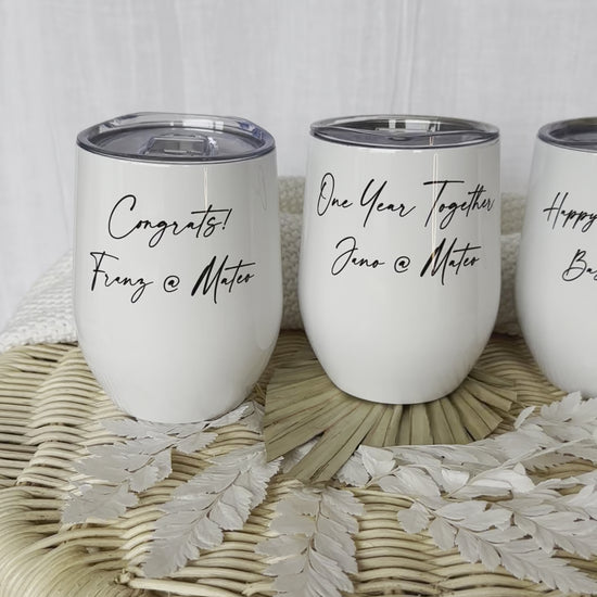 Nachhaltiger Thermobecher für warme und kalte Getränke. Der personalisierte Becher mit Deckel, eignet sich perfekt für Getränke wie Kaffee, Tee, Glühwein, Wein uvm. Die liebevoll personalisierte Geschenkidee, wird mit dem Wunschtext bzw. Wunschnamen gestaltet. Der Hochwertige doppelwandige Isolierbecher hat einen verschließbaren Deckel und hält Getränke warm bzw. kalt. So kann der Thermosbecher zu jeder Jahreszeit für Getränke genutzt werden. Sei es auf dem Weg zur Arbeit, auf der nächsten Party oder im Urlaub. Genieße doch einfach mal deinen Wein auf der nächsten Gartenparty aus dem individuellen Becher. Auch als Mitarbeitergeschenk oder zum JGA perfekt. Gestaltet mit dem jeweiligen Namen kommt es garantiert zu keiner Verwechslungsgefahr mehr.